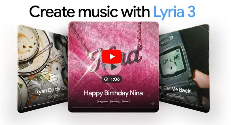 And new functionality integrating Lyra, their music model, into Gemini- A new way to express yourself: Gemini can now create music